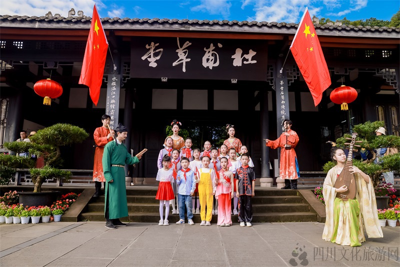 诵诗、看展、逛集市、看演出、看盆景,国庆期间草堂为游客准备了惬意闲适的游玩内容。