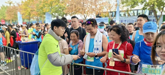 打扰一下,能麻烦帮我拍张照吗?”11月23日中午,2025眉山东坡马拉松的终点处,来自外地的跑者李先生,带着完赛后的疲惫与兴奋,将手机递向了正在执勤的东坡特警。