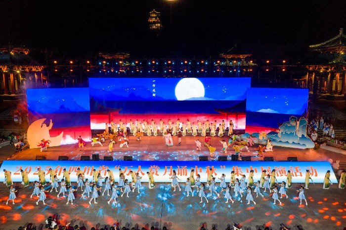 太白故乡月,同诵天府秋。10月5日晚,由省文化和旅游厅、绵阳市人民政府主办的2025年四川省“万人赏月诵中秋”集中展演活动在诗仙李白故里——绵阳江油青莲镇举行。