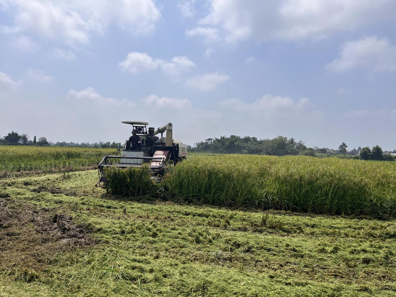 金浪翻涌收割忙 绵阳安州区河清镇同盛村杂交水稻制种田迎丰收