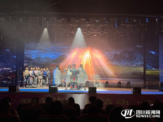7月21日晚,“长征路上看四川”大型宣传教育活动·阿坝行走进阿坝州松潘县,观看红色音乐剧《一捧糌粑》,在艺术光影中重温长征岁月,感受军民鱼水情。