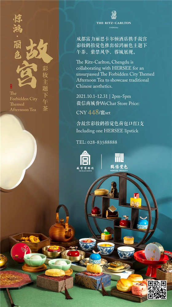 岁月无痕,器物有声,恍若穿越600年的光阴,故宫的黄瓦红墙悠然诉说着岁月的故事。成都富力丽思卡尔顿酒店携手故宫彩妆鹤禧觉色推出惊鸿·丽色主题下午茶,新任饼房厨师长Jerry以故宫设计元素为灵感,以中华传统色彩美学为基调,传播中华优秀文化,匠心打造一套具有浓郁中国风的精致下午茶,中国传统文化与美食相交融,紫禁风华,于蓉城绽放。